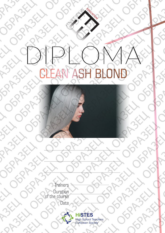 По итогу успешного прохождения семинара СLEAN ASH BLOND мастера получают внутренний ДИПЛОМ HAIR EXPERT и международный сертификат Факультета практического образования Открытой европейской академии экономики и политики, Прага.